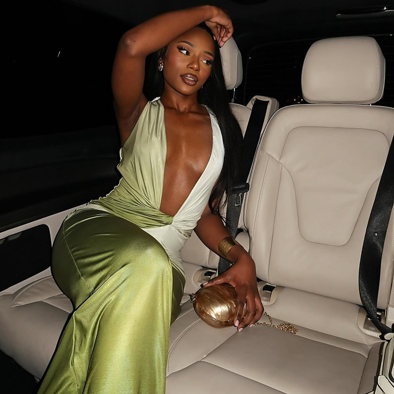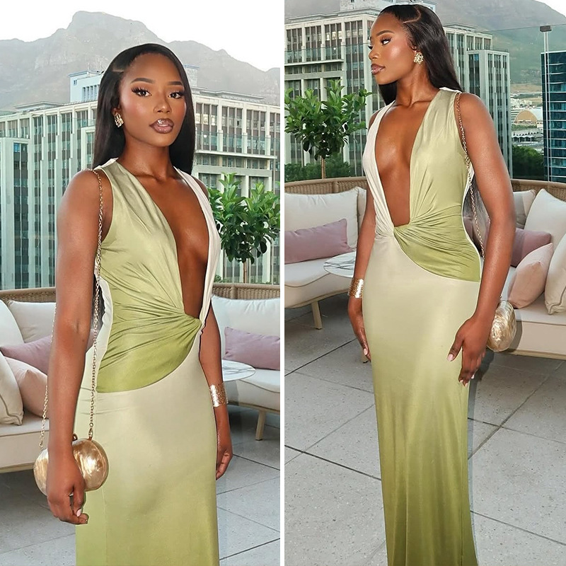 Slim-fit Women's Gradient Color Tight Skirt Sexy Deep V-neck Sleeveless