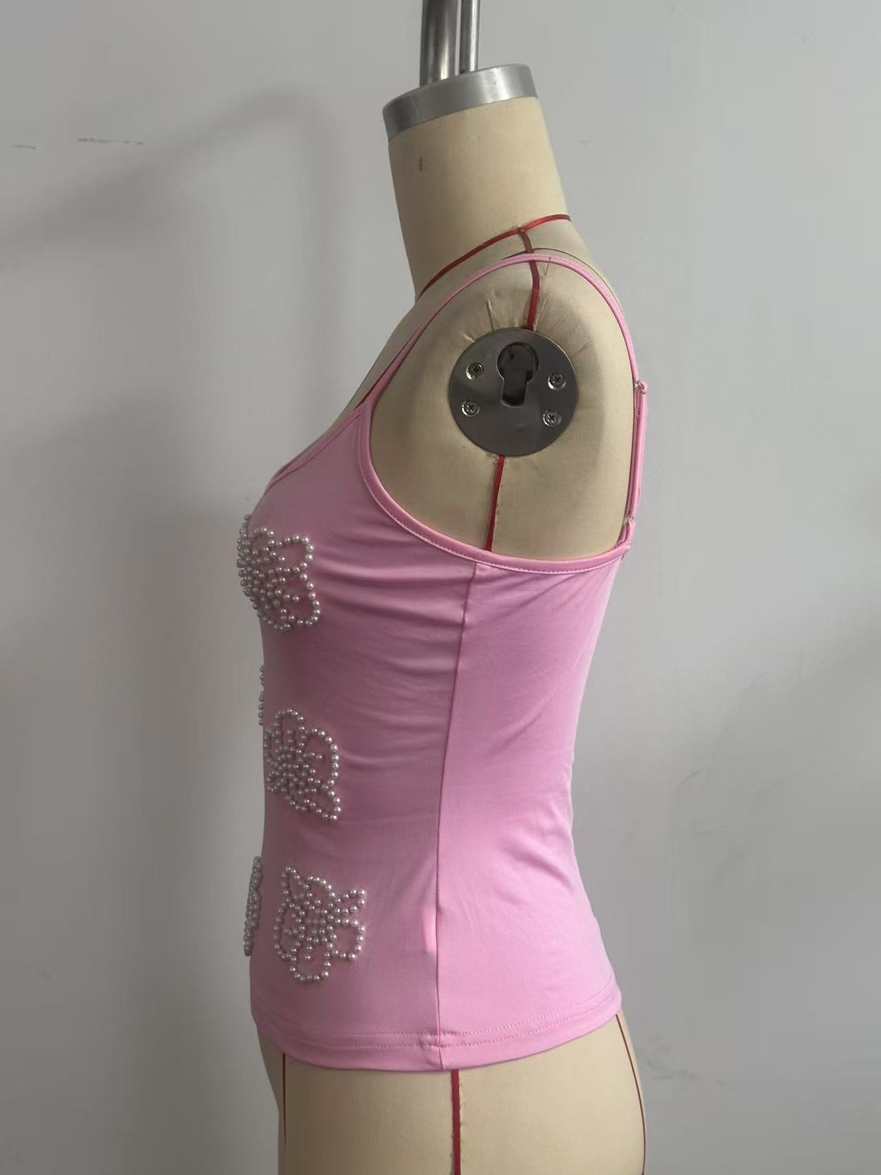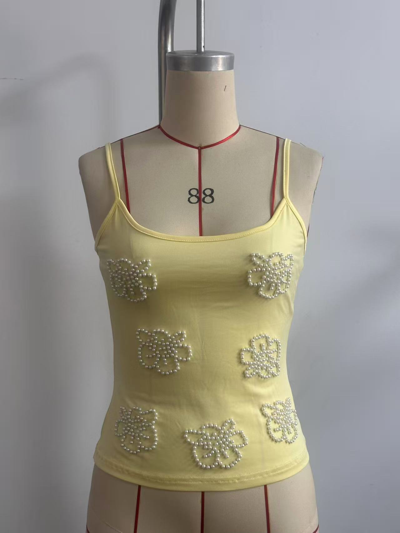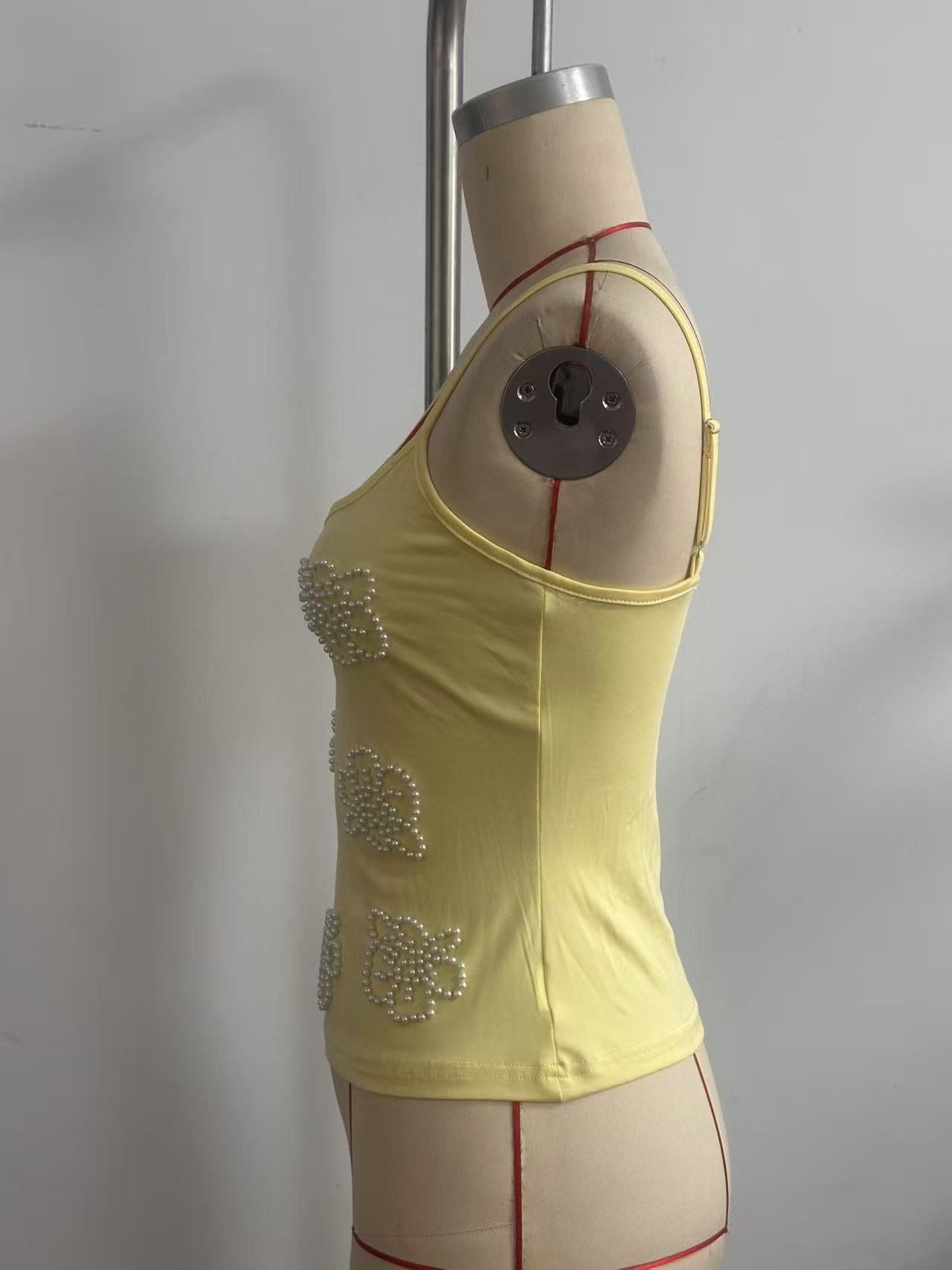 Summer New Women's Fashion Solid Color Bubble Bead Camisole