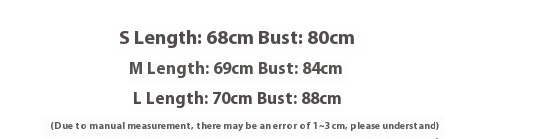 1. Asian sizes are 1 to 2 sizes smaller than European and American people. Choose the larger size if your size between two sizes. Please allow 2-3cm differences due to manual measurement. 2. Please check the size chart carefully before you buy the item, if you don't know how to choose size, please contact our customer service. 3.As you know, the different computers display colors differently, the color of the actual item may vary slightly from the following images.